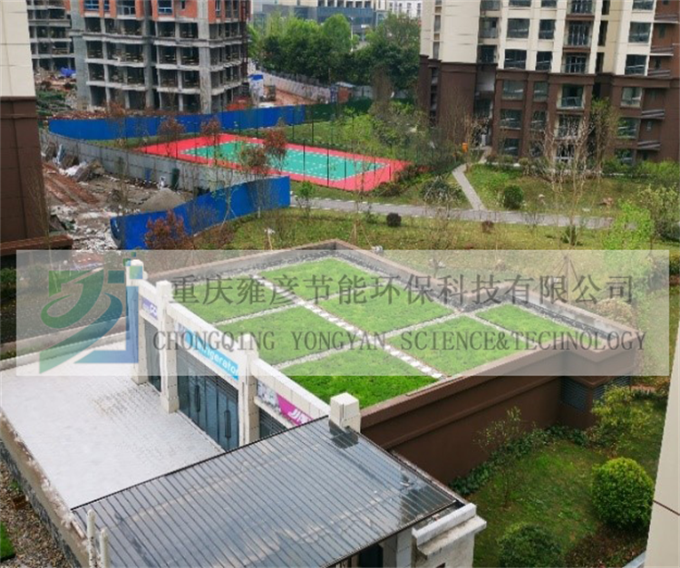 綠色屋頂實(shí)施區(qū)域?yàn)樯虡I(yè)屋頂,施工面積2544.29㎡。